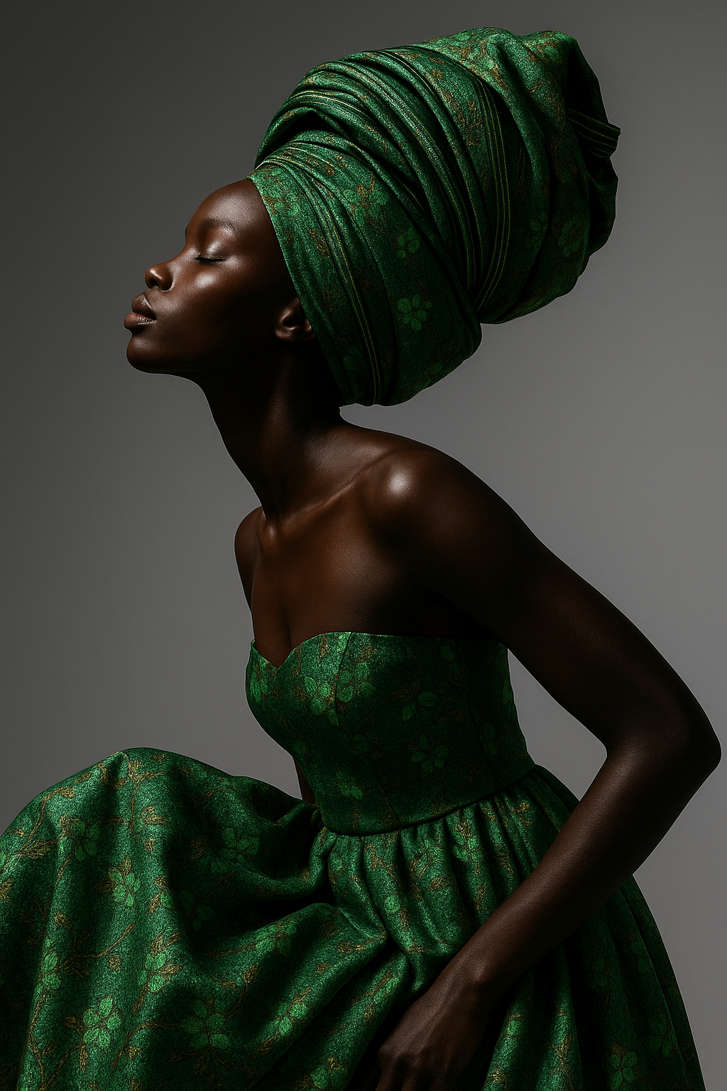 Chaque détail évoque la grâce et la puissance féminine, à la croisée de la tradition et du style contemporain.